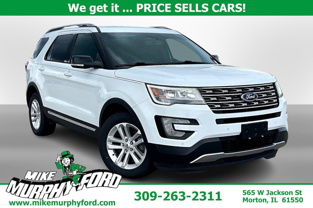 2016 Ford Explorer Oxford White XLT FWD 6-Speed Automatic with Select-Shift 3.5L V6 Flex Fuel Ti-VCT BLUE TOOTH HANDS FREE, SIRIUS XM, HEATED SEATS, LEATHER SEATS, POWER SEAT, REAR BACK UP CAMERA, REMOTE START SYSTEM, CLASS III TRAILER TOW PKG, LED FOG LAMPS, COMFORT PKG, FORWARD SENSNIG SYSTEM, PREMIUM AUDIO SYS, SYNC VOICE ACTIVATED SYSTEM, MYFORD TOUCH, DRIVER CONNECT PKG, REVERSE SENSING SYSTEM, CRUISE CONTROL, 18" Painted Aluminum Wheels, Air Conditioning, AM/FM radio: SiriusXM, Auto-Dimming Rear-View Mirror, CD player, Class III Trailer Tow Package, Comfort Package, Driver Connect Package, Dual-Zone Electronic Automatic Temperature Ctrl, Equipment Group 202A, Exterior Parking Camera Rear, Forward Sensing System, Front fog lights, Illuminated entry, Knee airbag, Leather-Trimmed Heated Bucket Seats, LED Fog Lamps, Power door mirrors, Power driver seat, Power passenger seat, Power windows, Radio: AM/FM Stereo w/Single CD/MP3 Capable, Rear air conditioning, Rear Parking Sensors, Remote keyless entry, Remote Start, Steering wheel mounted audio controls, SYNC, SYNC w/MyFord Touch, Telescoping steering wheel, Tilt steering wheel, Turn signal indicator mirrors.